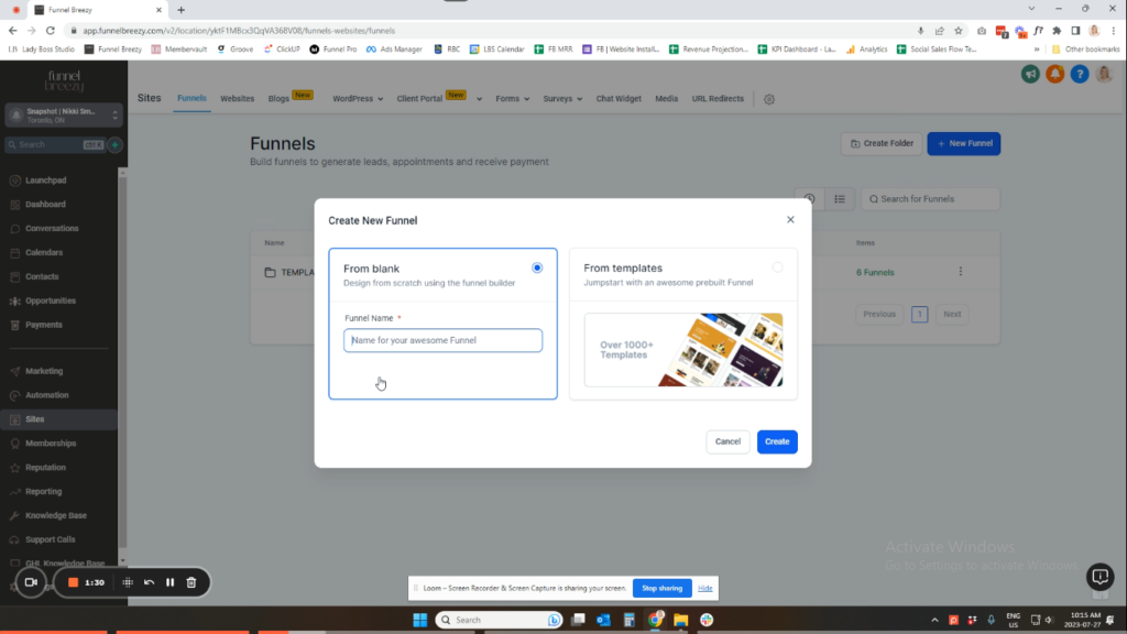 - Choose “From Templates” (you can also choose “Blank Funnel”).