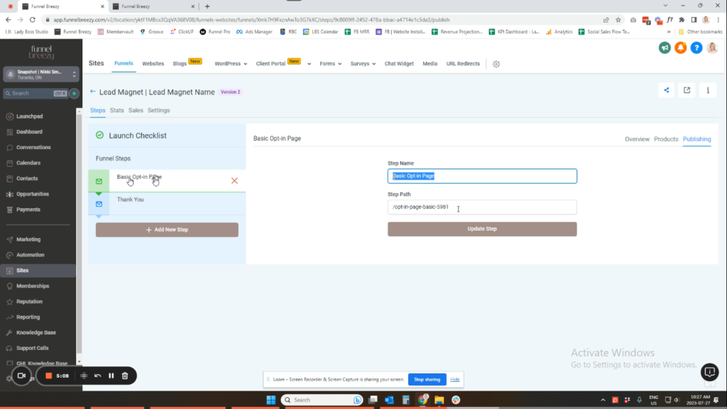 • Edit the “Step Name” and “Step URL” to something relevant to that specific page (e.g., “lead-magnet-thank-you”).