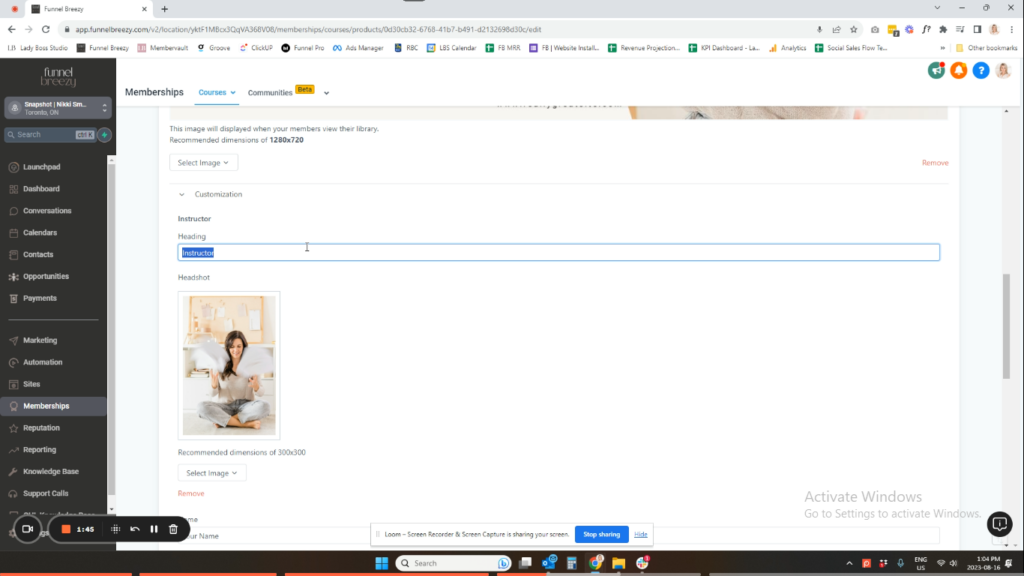 - Under “Customization,” you can change your instructor title (e.g., Coach, Instructor).