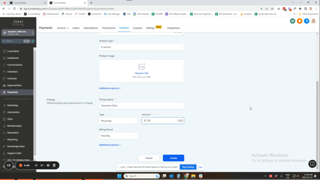 - Choose between One-Time Payment or Recurring. If recurring, define the payment plan details.